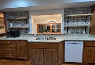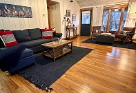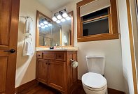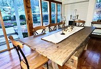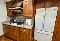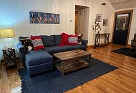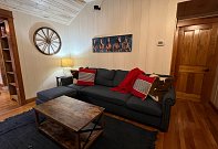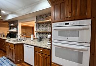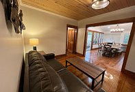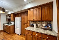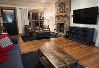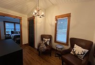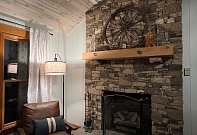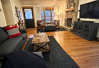 As you enter Gold Mine Ranch the living room greets you with a stacked stone gas fireplace for effortless ambiance and warmth. A large sofa and big screen television, along with a comfy fireside sitting area with two chairs and ottomans. Main Living Room opens into a secondary sitting area with Queen Size Sleeper Sofa and office space w/desk.