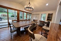 Gold Mine Ranch has an amazing outdoor space on 10 aces w/ Hot Tub, 2 fire pits,creek & outdoor dining. Home has 2 king suites one on main level each w/en-suite. Family friendly space w/ game and bunk rooms. Beautiful peaceful mountain views. Easy access, paved, w/plenty of parking. Convenient location, 8 miles from Downtown Highlands,1.9 miles from Highlands Waterfalls.
